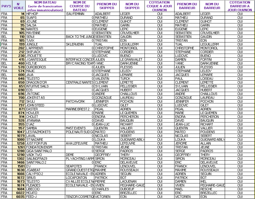 – un certificat pour les barreurs non propriétaire, est obligatoire, aller sur le site de WORLD SAILING (ex : ISAF) et cliquer SAILOR CLASSIFICATION pour obtenir votre certificat qui vous sera demandé à la chaine d’inscription (la procédure est traduite en Français). Pensez à anticiper cette démarche au minimum 8 jours avant le début de l’épreuve.