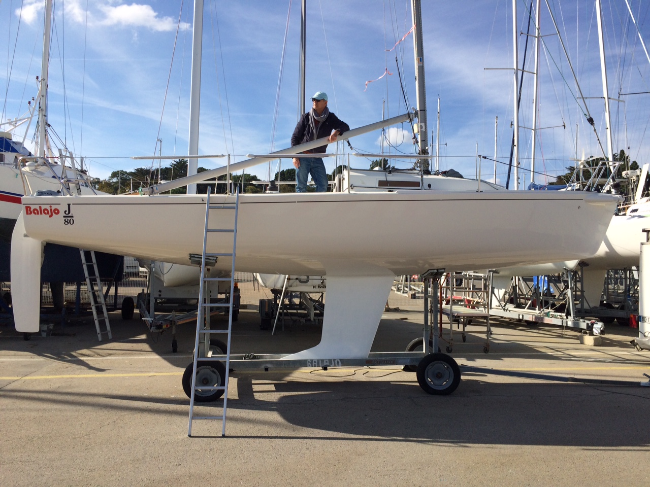 Bonjour Je vends chariot adapté pour mon J 80 ( achat remorque de route depuis ) utilisé sur terreplein à La Trinité sur mer durant 6 ans pour mise à l'au sous la grue potence