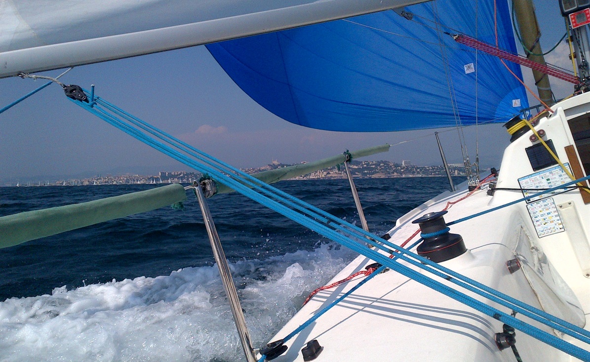 Bonjour, Je vends un Spi X-Voiles bleu de 2013 qui n'a servit que sur 3 régates en 2013 et qui est resté propre dans un endroit sec.