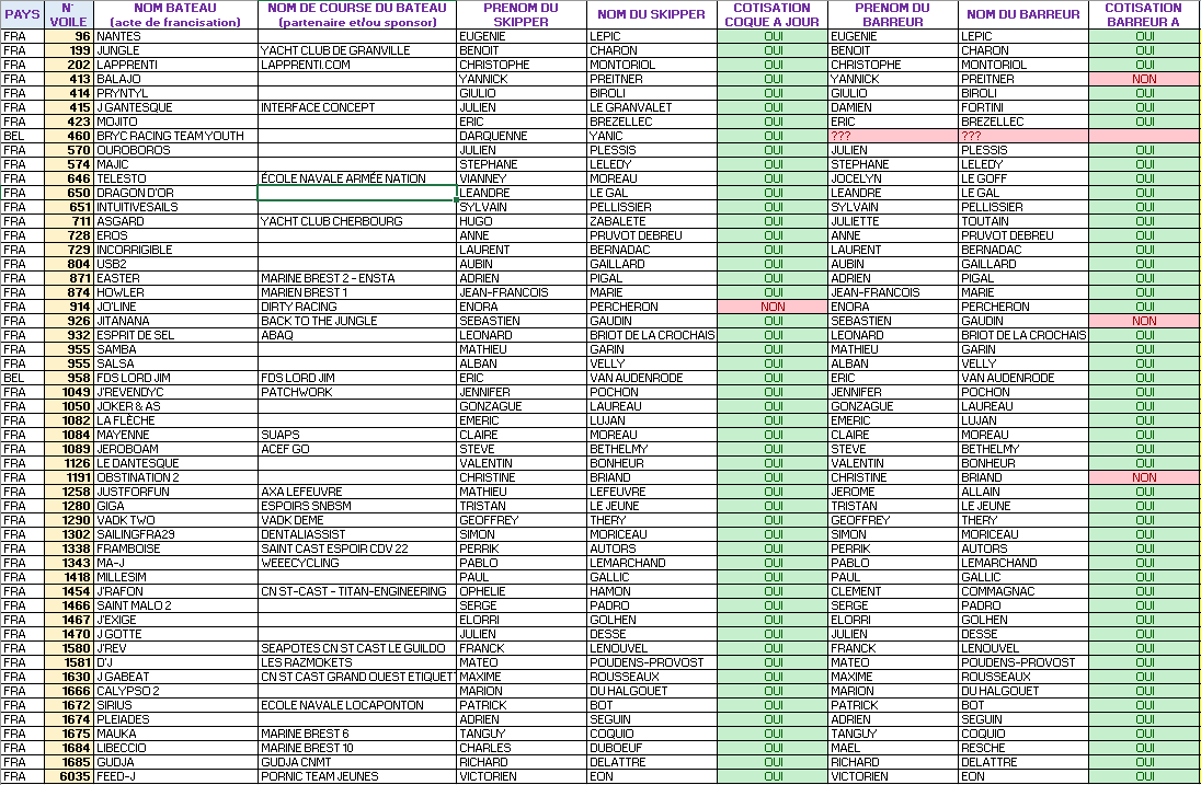 Liste des bateaux inscrits à la jauge du vendredi 3 avril.